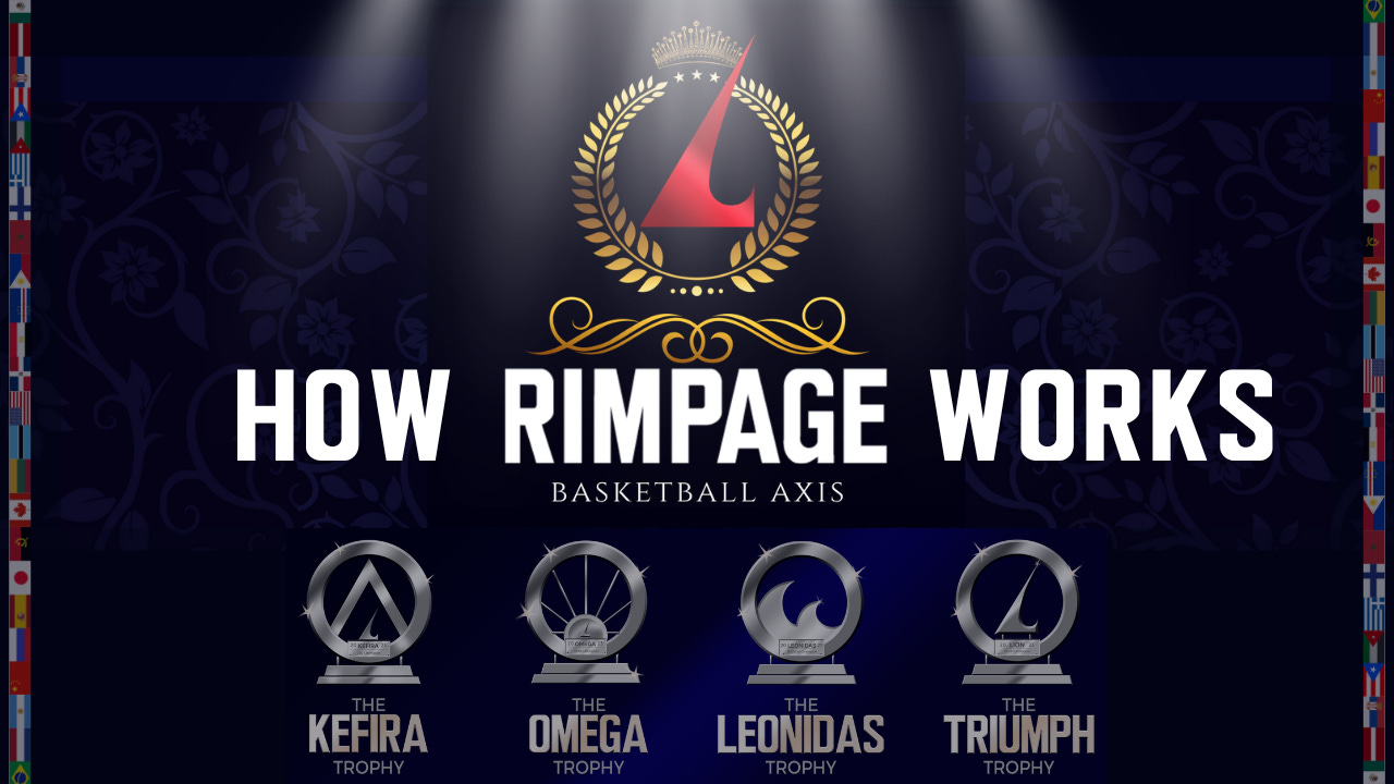The biggest postseason in any sport - a Rimpage's postseason will have more events than any other league, starting with city championships. Next the regional tournaments. At the third round regional champions bathe it out on the national tournaments to decide who is the best player in every country. Those national champions will represent their countries in the biggest event in all of basketball, the Lion's Tournament! The Winner is the undisputed World Champion!